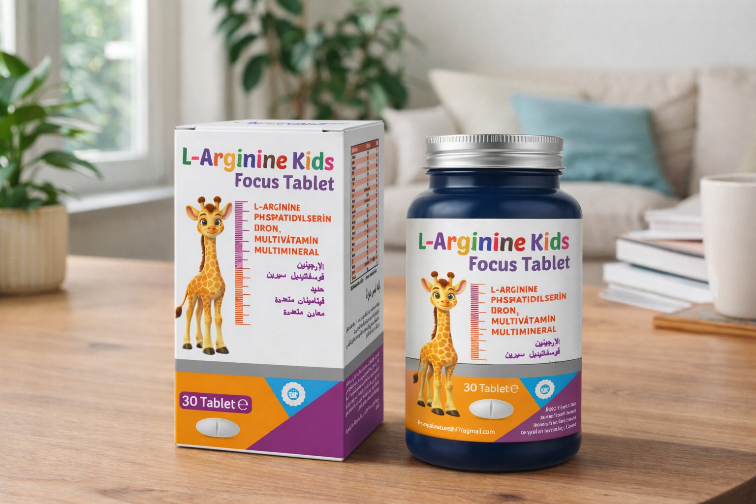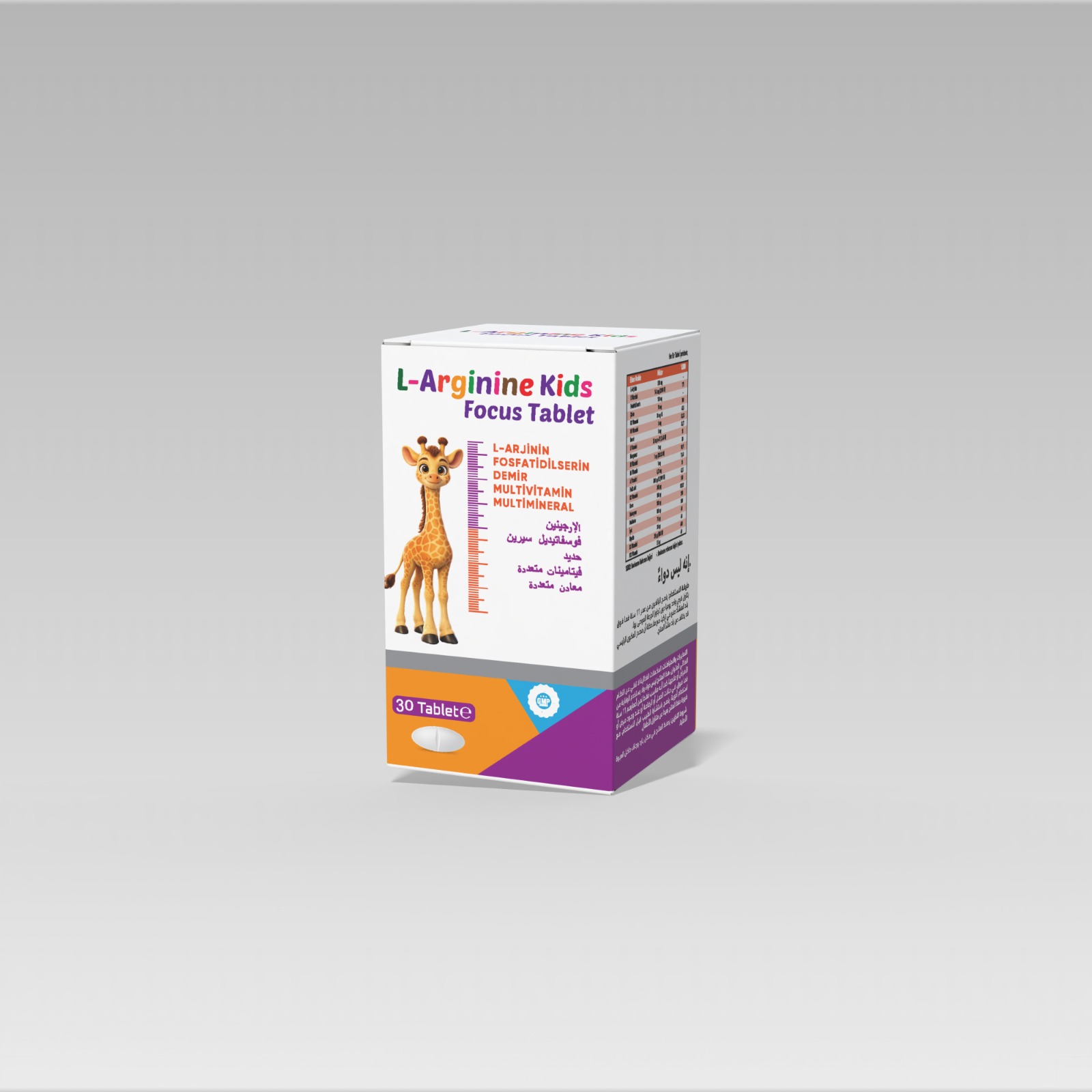 L-Arjinin Çocuk Odak Tableti, çocuklar için hazırlanmış tablet formunda bir takviye ürünüdür. Ürün içeriğinde L-arjinin, fosfatidilserin, demir, multivitamin ve multimineral bileşenleri bulunmaktadır.